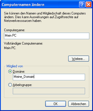 den Systemeigenschaften->Computername->Ändern der Domain-Name